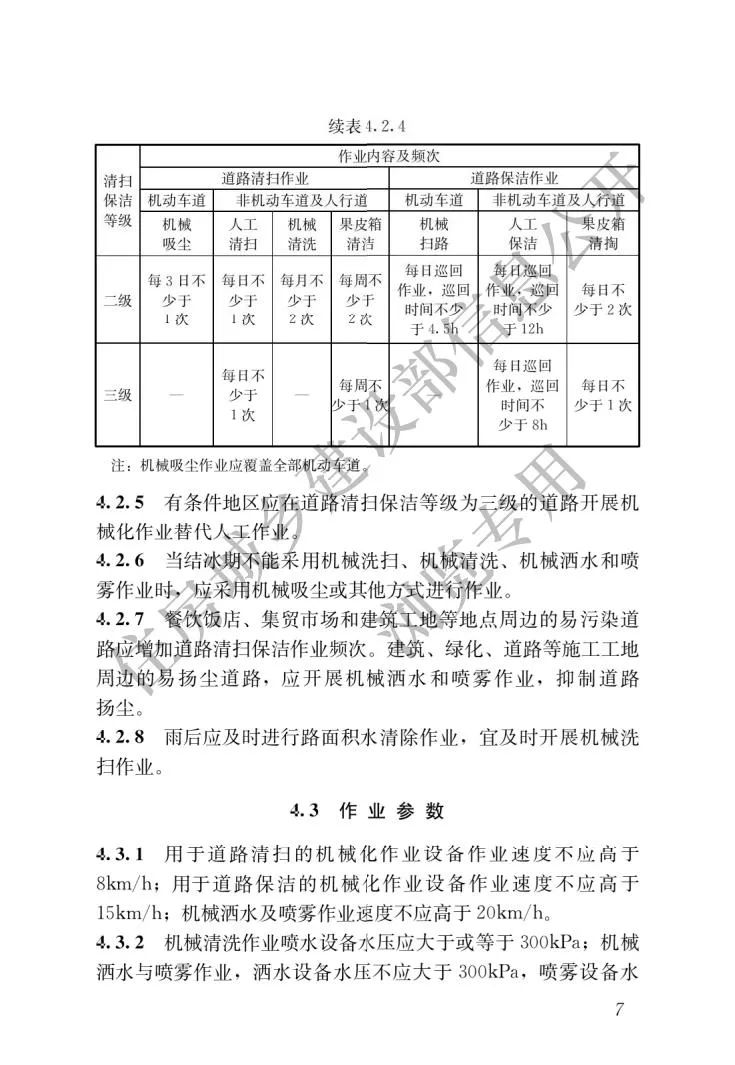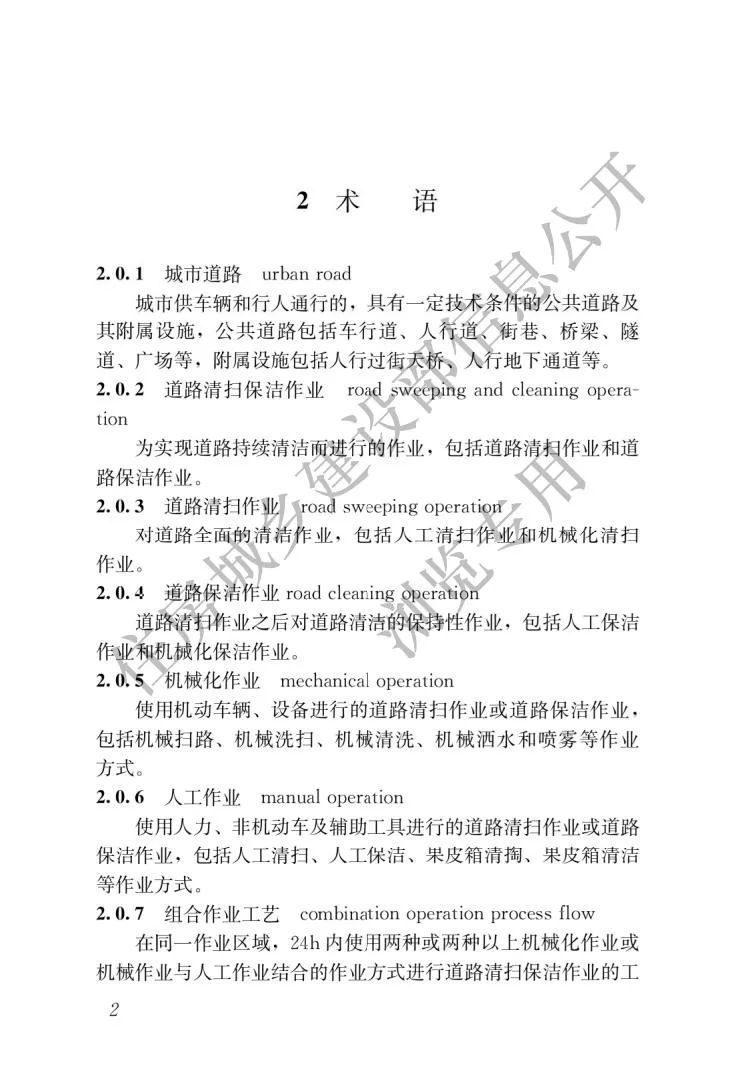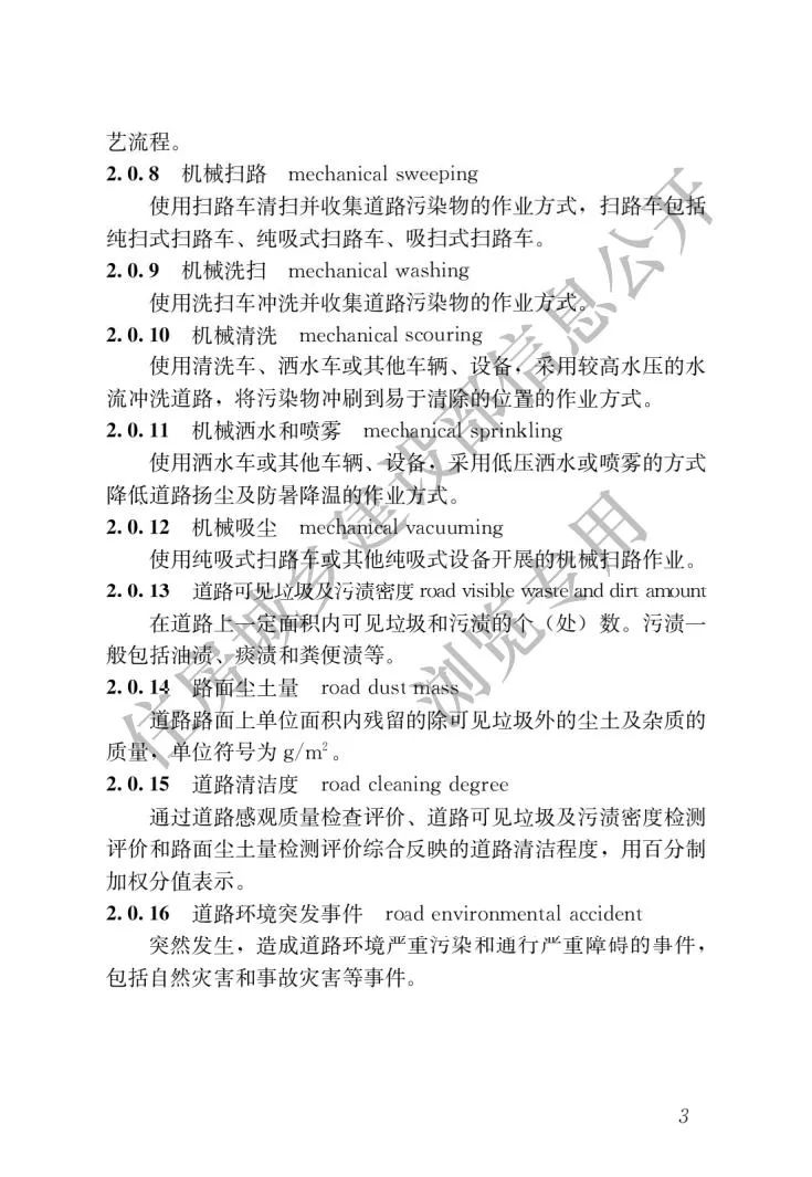現(xiàn)批準(zhǔn)《城市道路清掃保潔與質(zhì)量評價標(biāo)準(zhǔn)》為行業(yè)標(biāo)準(zhǔn),編號為CJJ/T126-2022,自2022年5月1日起實施。原行業(yè)標(biāo)準(zhǔn)《城市道路清掃保潔質(zhì)量與評價標(biāo)準(zhǔn)》(CJJ/T126-2008)同時廢止。2.修改并增加了道路清掃保潔作業(yè)要求部分條款;3.調(diào)整了道路清掃保清質(zhì)量評價內(nèi)容;4.修改了道路感觀質(zhì)量檢查評價步驟方法;5.修改了道路可見垃圾及污漬密度檢測評價步驟方法;