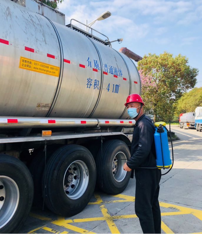 餐廚廢棄油脂收運(yùn)單位對運(yùn)輸車輛進(jìn)行消殺工作