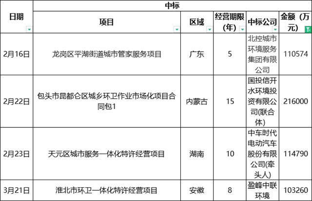 一季度盈峰中聯(lián)環(huán)境中標(biāo)的億級(jí)環(huán)衛(wèi)項(xiàng)目