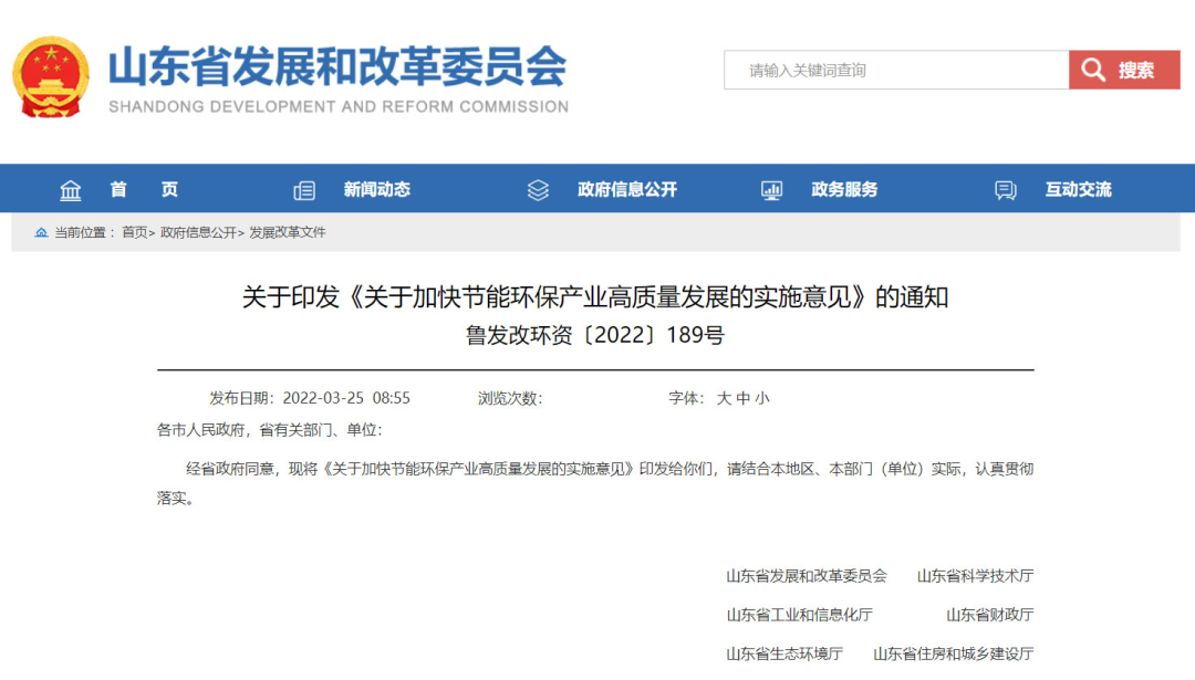 1、關(guān)于印發(fā)《關(guān)于加快節(jié)能環(huán)保產(chǎn)業(yè)高質(zhì)量發(fā)展的實施意見》的通知,山東省發(fā)改委,2022-03-25