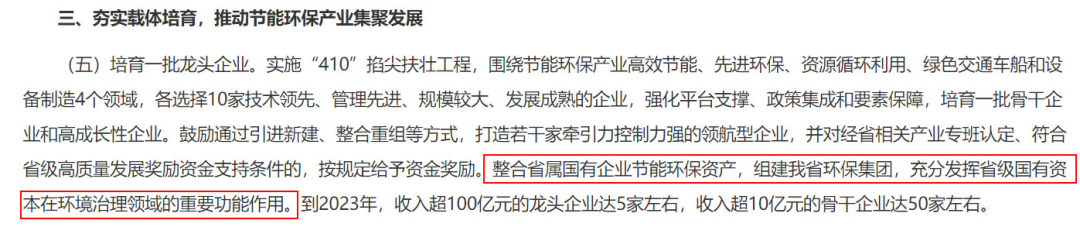 可以看出,組建省級環(huán)保集團,是山東省“培育一批龍頭企業(yè)”的3個具體措施之一。