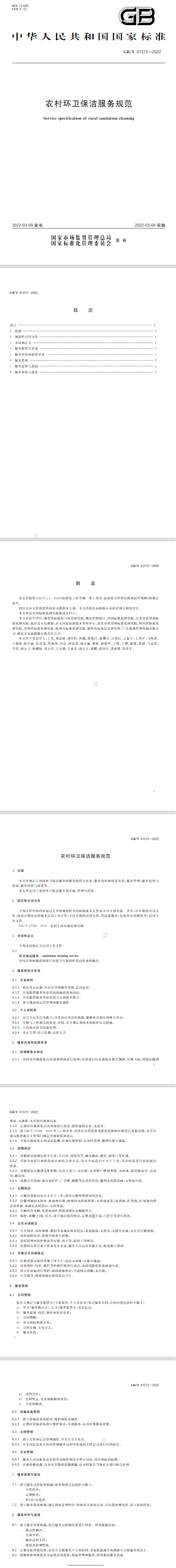 日前,國家市場監(jiān)督管理總局、中國國家標(biāo)準(zhǔn)化管理委員會(huì)聯(lián)合編制的《農(nóng)村環(huán)衛(wèi)保潔服務(wù)規(guī)范》(GB/T 41373-2022)發(fā)布,并于2022年3月9日正式施行。