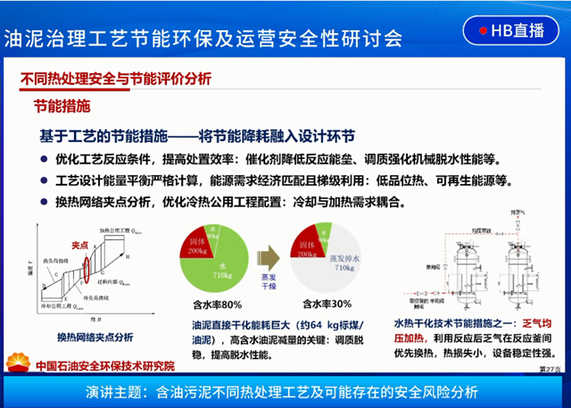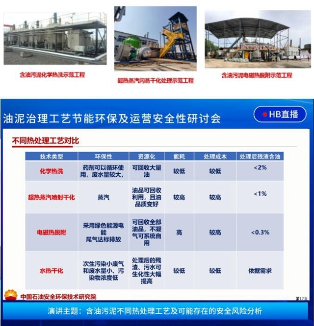 在《含油污泥不同熱處理工藝及可能存在的安全風(fēng)險(xiǎn)分析》的主題演講中,劉光全詳細(xì)介紹了中國(guó)石油集團(tuán)安全環(huán)保技術(shù)研究院開(kāi)發(fā)的熱處理工藝,包括含油固廢化學(xué)熱洗、超熱蒸汽噴射干化、熱脫附、水熱干化等,并對(duì)幾種技術(shù)的特點(diǎn)及安全性進(jìn)行了闡述與分析。