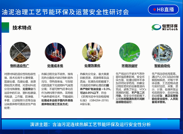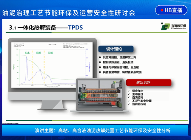 宜可歐環(huán)保于立松帶來(lái)的《高粘、高含液油泥熱解處置工藝節(jié)能環(huán)保及安全性分析》的演講則更進(jìn)一步,朝著油泥治理中更細(xì)分難度更高的領(lǐng)域深挖,聚焦高粘、高含液特性污泥這一痛點(diǎn),著重分析了處理過(guò)程中會(huì)遇到的問(wèn)題及宜可歐對(duì)此提供的高效解決方案。