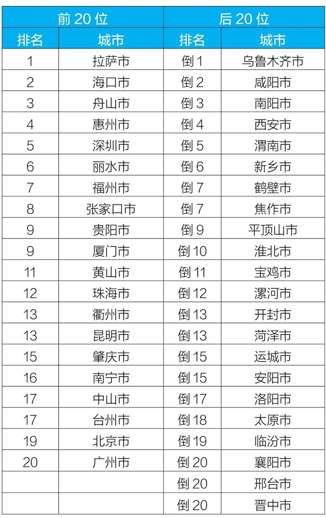 1—3月,168個(gè)重點(diǎn)城市中,拉薩、??诤椭凵绞械瘸鞘锌諝赓|(zhì)量相對(duì)較好(從第1名至第20名);烏魯木齊、咸陽(yáng)和南陽(yáng)市等城市空氣質(zhì)量相對(duì)較差(從倒數(shù)第1名至并列倒數(shù)第20名)。葫蘆島、張家口和唐山市等城市空氣質(zhì)量變化情況相對(duì)較好(從第1名至第20名);孝感、淮北和晉中市等城市空氣質(zhì)量變化情況相對(duì)較差(從倒數(shù)第1名至倒數(shù)第20名)。見(jiàn)附表2、3。