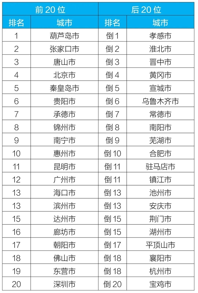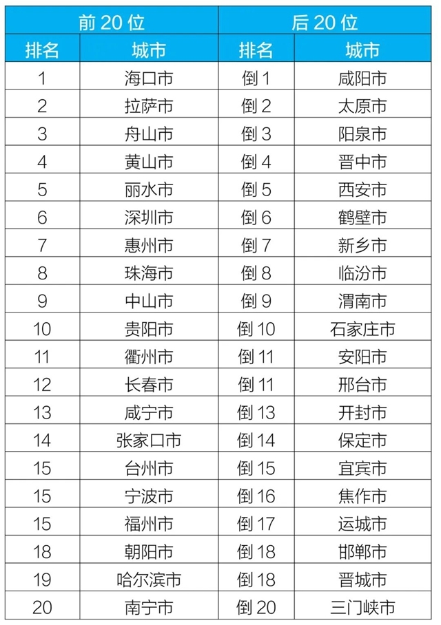 3月,168個(gè)重點(diǎn)城市中,海口、拉薩和舟山市等城市空氣質(zhì)量相對(duì)較好(從第1名至第20名);咸陽(yáng)、太原和陽(yáng)泉市等城市空氣質(zhì)量相對(duì)較差(從倒數(shù)第1名至倒數(shù)第20名),見(jiàn)附表1。