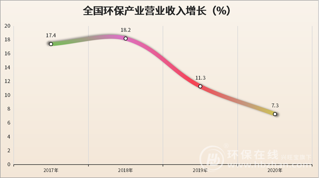 并且不可否認(rèn)的是,隨著“十三五”規(guī)劃目標(biāo)的圓滿完成,環(huán)保產(chǎn)業(yè)規(guī)模的增速確有波動(dòng)。來自中國環(huán)保產(chǎn)業(yè)協(xié)會(huì)的《中國環(huán)保產(chǎn)業(yè)發(fā)展?fàn)顩r報(bào)告(2021)》顯示,2020年全國環(huán)保產(chǎn)業(yè)營業(yè)收入增長約為7.3%??梢詫?duì)比一下,增速放緩的信號(hào)還是比較明顯的。