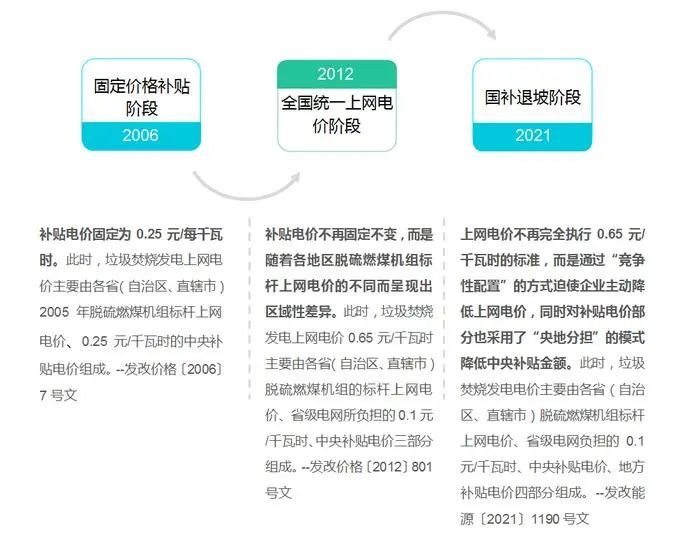 通過對垃圾焚燒發(fā)電電價(jià)補(bǔ)貼政策的梳理可以看出,我國垃圾焚燒發(fā)電電價(jià)補(bǔ)貼價(jià)格主要經(jīng)歷了三個階段的發(fā)展,即: