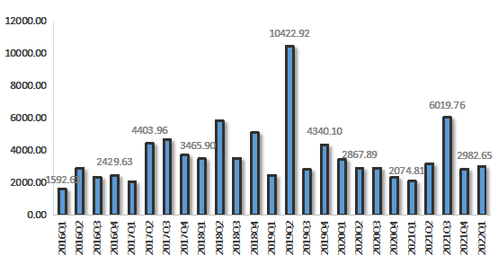 2022年第一季度,浙江省排污權(quán)成交量較上季度有所增長,四項(xiàng)排污權(quán)成交量合計為2982.65噸,環(huán)比增長5.96%,同比增長43.76%。