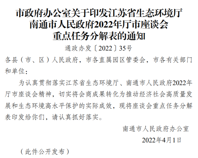 近日,南通市政府辦公室關于印發(fā)《江蘇省生態(tài)環(huán)境廳南通市人民政府2022年廳市座談會 重點任務分解表的通知》(以下簡稱為《通知》),《通知》指出將成立江蘇環(huán)保 集團南通區(qū)域公司、探索生態(tài)環(huán)境導向開發(fā)模式(EOD模式)等。