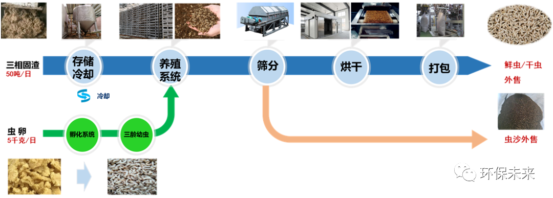 圖6 老港濕垃圾生物(黑水虻)資源化示范項(xiàng)目處理工藝流程