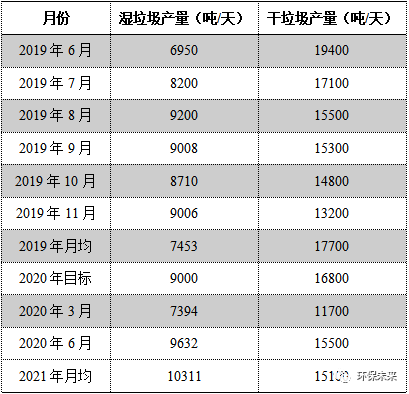 據(jù)上海市綠化市容局公布的數(shù)據(jù)顯示(表1所示),2019年7月,上海廚余(濕)垃圾分出量達(dá)到8200噸/天,較2018年年底增長(zhǎng)了110%。2020年6月,上海廚余垃圾分出量達(dá)到9632噸/天,較2019年同期增長(zhǎng)近40%,2021年濕垃圾產(chǎn)量平均已經(jīng)超過(guò)1萬(wàn)噸/日,分類成效遠(yuǎn)遠(yuǎn)走在國(guó)內(nèi)前端。預(yù)計(jì)上海廚余垃圾分出總量的峰值可以達(dá)到11300噸/天,其中家庭廚余占6800噸/天,餐廚垃圾3000噸/天,其他濕垃圾1500噸/天。