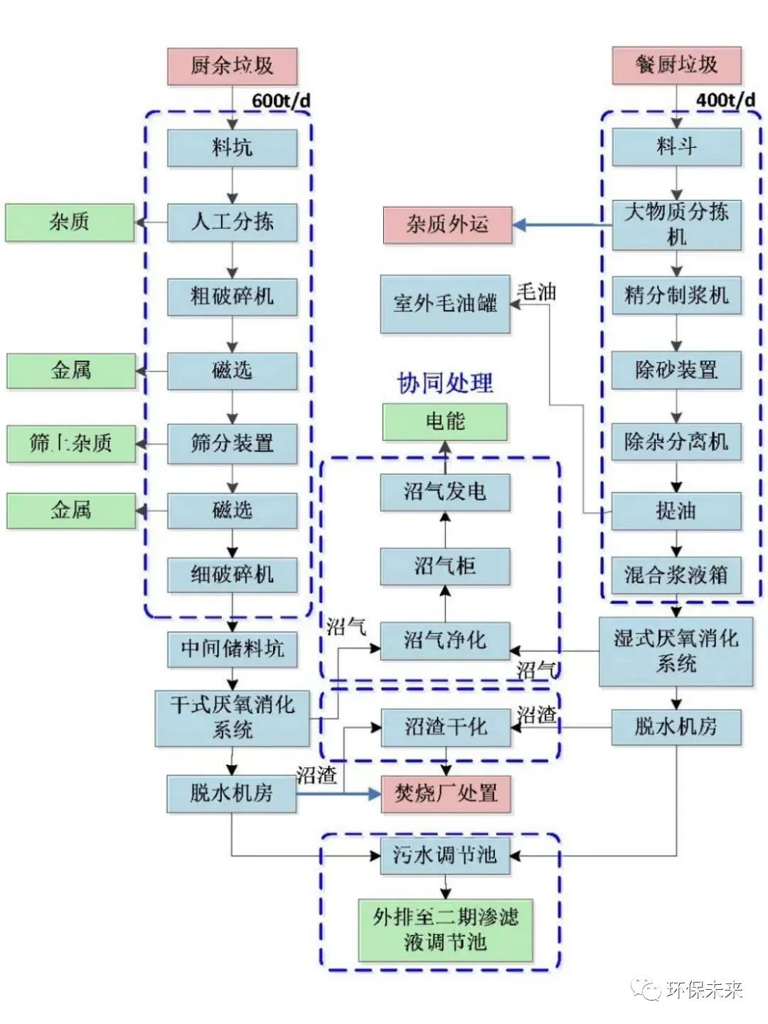 圖3  閔行餐廚廢棄物資源化中心(一期)工藝流程