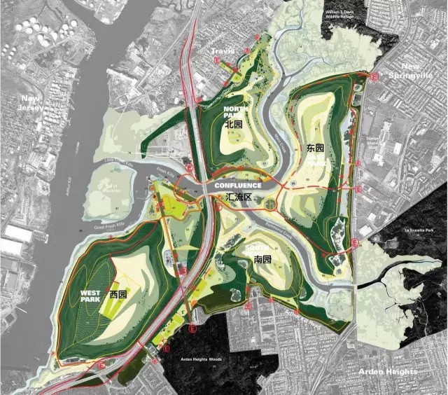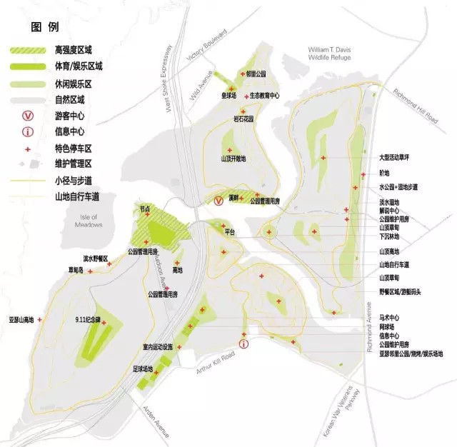 公園的建設(shè)項目以提升斯塔滕島形象,創(chuàng)造宜居、宜樂、宜教的城市空間為目標(biāo)。發(fā)展項目遵循以下六項原則:
