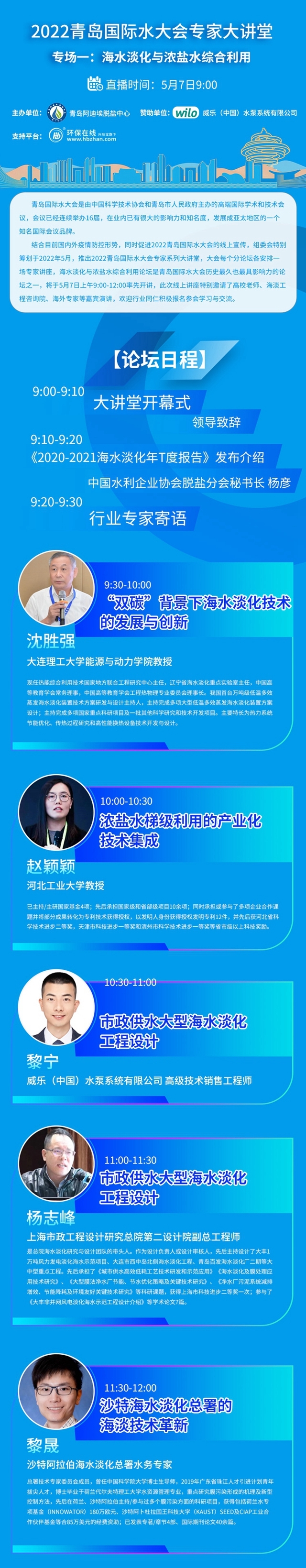 2022年,為了響應(yīng)疫情防控要求的同時(shí)推進(jìn)業(yè)界交流,組委會(huì)特?cái)y手環(huán)保在線推出“2022青島國(guó)際水大會(huì)專家系列大講堂”線上活動(dòng),海水淡化與濃鹽水綜合利用專場(chǎng)作為開門一炮,可是不簡(jiǎn)單。
