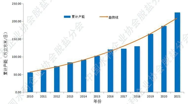 2010-2021年 國內(nèi)已建成海水淡化項目累計產(chǎn)能