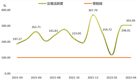 2022年4月,浙江省排污權(quán)交易活躍度指數(shù)為303.09點,環(huán)比上行1.43%,與上年同期相比上行61.93%。