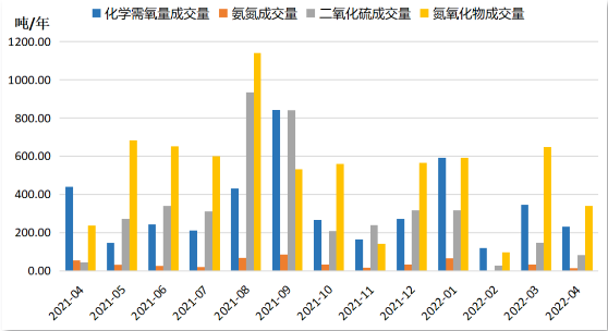 四項排污權(quán)成交量:化學(xué)需氧量成交量為231.64噸,氨氮成交量為13.60噸,二氧化硫成交量為82.94噸,氮氧化物成交量為338.81噸。