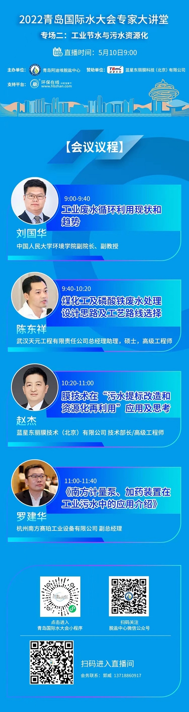 聚焦【工業(yè)節(jié)水與污水資源化】議題,由環(huán)保在線攜手青島阿迪埃脫鹽中心舉辦的“2022青島國際水大會專家大講堂”線上活動,將于5月10日上午9:00翻開第二篇章。屆時,各領(lǐng)域?qū)<?、學(xué)者及特邀嘉賓將齊聚一堂,以“演講+實時互動”的形式,圍繞工業(yè)水處理熱點展開討論,為行業(yè)前行之路點亮一盞明燈。