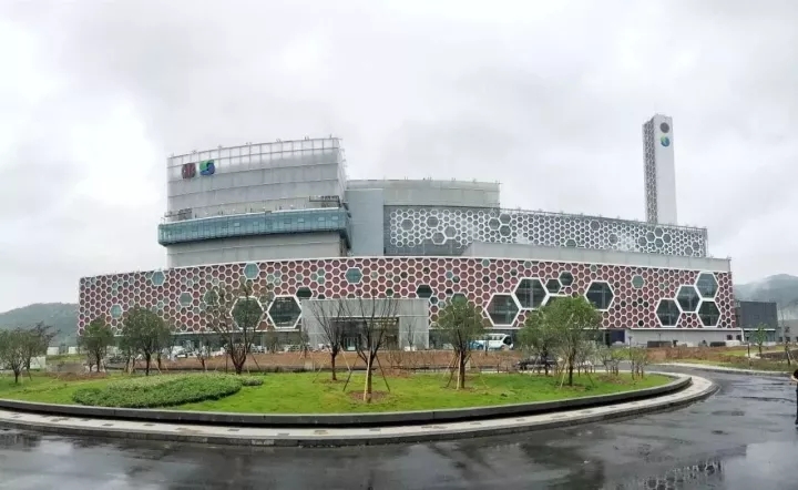 專家團(tuán)隊(duì)考察的第一站,是位于寧波海曙區(qū)洞橋鎮(zhèn)宣裴村裴岙的寧波市固廢處理中心,共占地289畝,西靠武嶺,東瀕剡溪,北依雪竇山,水繞山環(huán),景色秀麗。其中寧波明州生活垃圾焚燒發(fā)電廠是康恒環(huán)境在寧波全力打造的精品項(xiàng)目,處理規(guī)模為2250噸/日(3 x 750噸/日機(jī)械爐排爐),年處理生活垃圾可達(dá)82萬(wàn)噸,發(fā)電量約2.6億度,占地面積82729平方米。項(xiàng)目外觀和立面由法國(guó)AIA公司設(shè)計(jì),采用“去工業(yè)化”的設(shè)計(jì)手法,引入蜂巢設(shè)計(jì)的理念,將文化與藝術(shù)的元素融入項(xiàng)目的建設(shè)之中,精心打造的既有工業(yè)美感,又兼具藝術(shù)氣質(zhì)的新地標(biāo),被業(yè)內(nèi)人士稱為“最美的垃圾發(fā)電廠”。