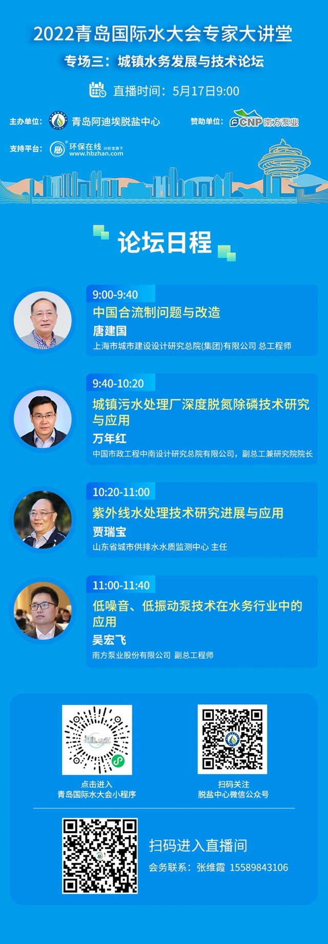 論直播內(nèi)容,排水系統(tǒng)提質(zhì)增效、污水處理廠提標(biāo)擴(kuò)容、膜技術(shù)應(yīng)用理論及實(shí)踐、污水處理領(lǐng)域的前沿技術(shù)及示范、污泥無害化處理及資源化利用等都有;論嘉賓陣容,上海市城市建設(shè)設(shè)計(jì)研究總院(集團(tuán))有限公司 總工程師唐建國、中國市政工程中南設(shè)計(jì)研究總院有限公司,副總工兼研究院院長萬年紅、山東省城市供排水水質(zhì)監(jiān)測中心 主任 賈瑞寶及南方泵業(yè)股份有限公司  副總工程師 吳宏飛等多位專家、學(xué)者濟(jì)濟(jì)一堂。