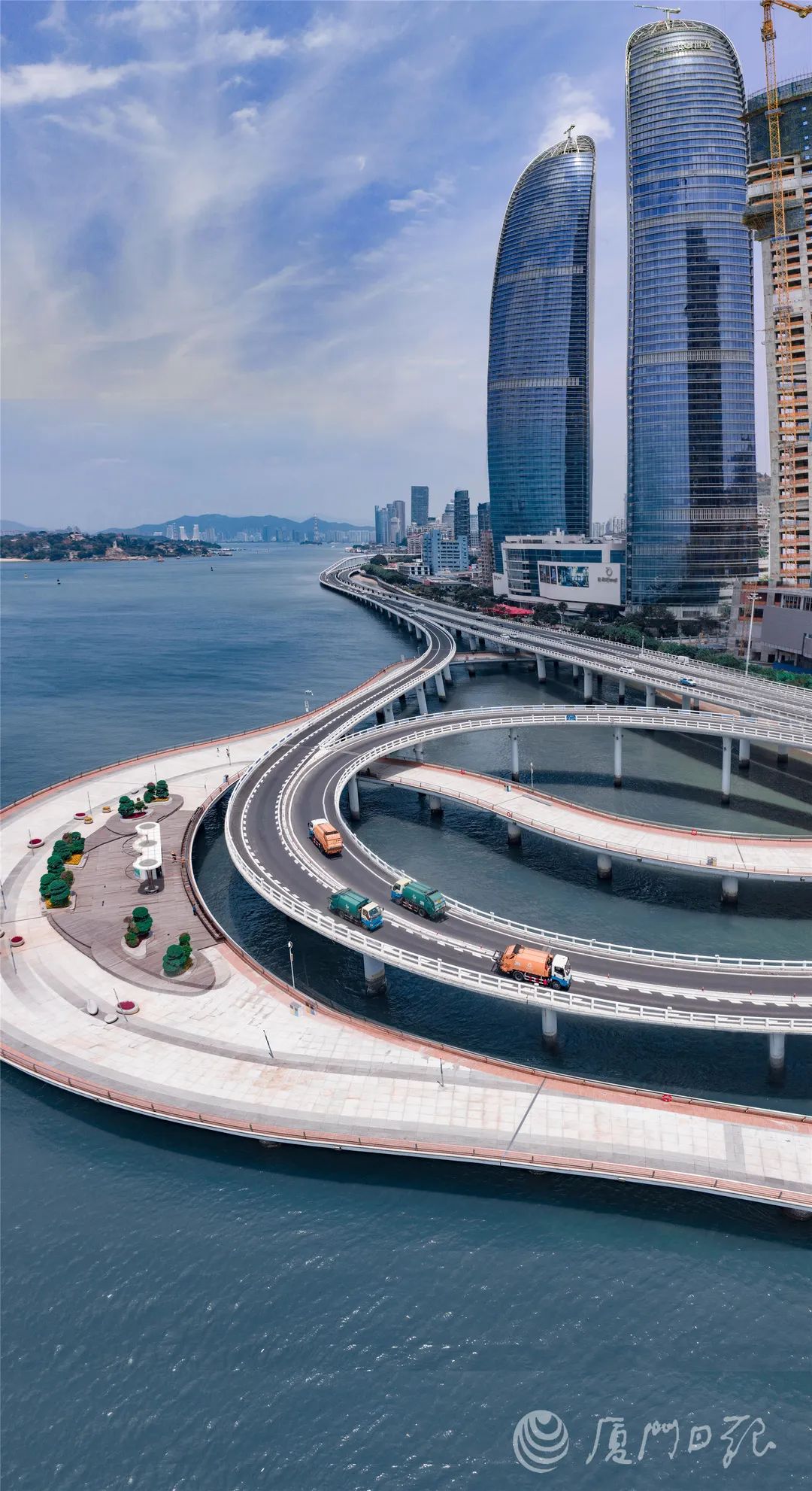 廈門垃圾分類工作持續(xù)全面高效有序展開。圖為行駛中的廚余垃圾和其他垃圾收運(yùn)車輛。