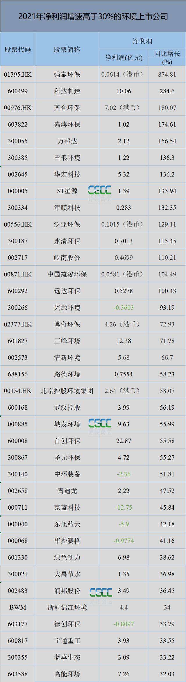 原標題:2021年環(huán)境上市企業(yè)最賺錢的都有誰?