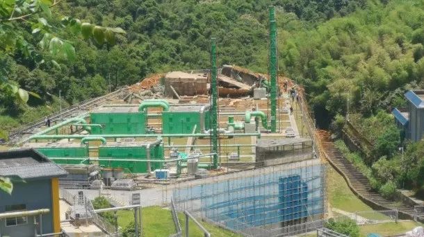 作為福州市區(qū)唯一的垃圾滲瀝液處理項目,它主要處理福州市紅廟嶺垃圾綜合處理場滲瀝液、垃圾焚燒廠滲瀝液和場區(qū)的生活污水。2018年,紅廟嶺循環(huán)經濟生態(tài)產業(yè)園進行了一輪升級改造,工程之一就是“紅廟嶺垃圾滲瀝液調節(jié)池整治工程”。新建滲瀝液調節(jié)池有效容積10萬m3、廢氣收集處理系統(tǒng)、修建配套邊坡?lián)鯄σ约皩ΜF(xiàn)狀滲瀝液集污池進行防滲與加蓋處理,以及分別來自填埋場與焚燒廠的滲瀝液接至新建調節(jié)池的管道系統(tǒng)。