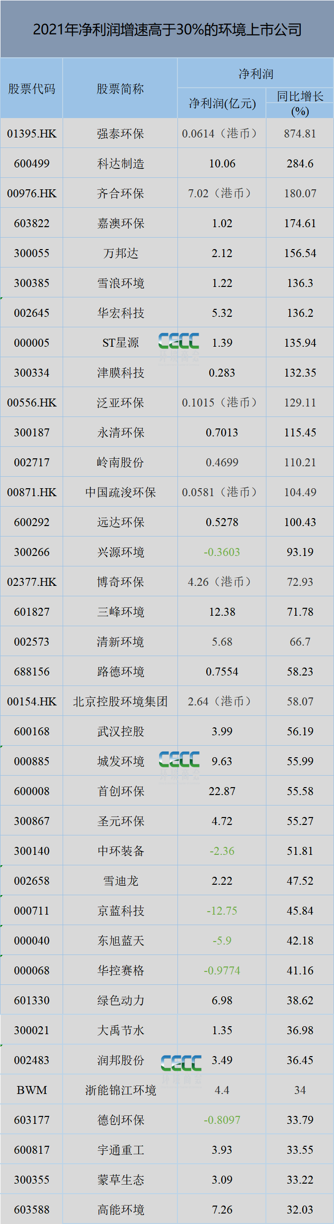 凈利潤(rùn)增速方面,2021年,凈利潤(rùn)增長(zhǎng)超過(guò)30%的企業(yè)有38家,按照增長(zhǎng)幅度降序排列如下: