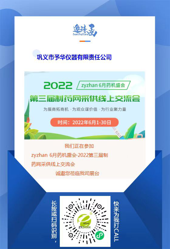 足不出戶、成本低、靈活便捷、資源覆蓋面廣、推廣渠道多樣化,制藥網(wǎng)曾舉辦的“2020制藥網(wǎng)線上展·制藥產(chǎn)業(yè)線上展覽會-公益展”給很多藥機展商留下了比較深刻的印象,重點開發(fā)生產(chǎn)銷售教學(xué)儀器的專業(yè)廠家——鞏義予華儀器有限責任公司(以下簡稱:予華儀器)就是其中的一員。時隔一年,zyzhan 6月藥機盛會——2022第三屆制藥網(wǎng)采供線上交流會(簡稱“zyzhan 6月藥機盛會”)將于2022年6月1日-6月30日舉行,予華儀器已確認出席,將與眾多同行企業(yè)一起點燃今夏。