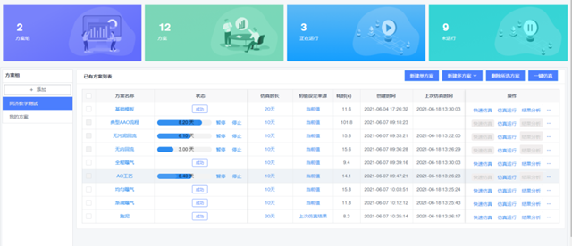2) 評(píng)估不同運(yùn)行工況對(duì)水質(zhì),能耗的影響,實(shí)現(xiàn)工藝優(yōu)化和輔助方案決策;