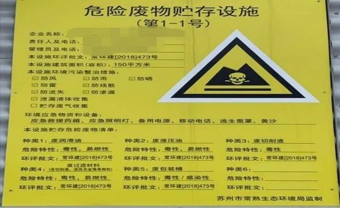 在收集、貯存、運(yùn)輸、利用、處置危險(xiǎn)廢物的設(shè)施、場(chǎng)所均應(yīng)設(shè)置規(guī)范(形狀、顏色、圖案均正確,其中貯存場(chǎng)所還應(yīng)按照《關(guān)于進(jìn)一步加強(qiáng)危險(xiǎn)廢物污染防治工作的實(shí)施意見》(蘇環(huán)辦字〔2019〕222號(hào))要求規(guī)范設(shè)置識(shí)別標(biāo)識(shí))的危險(xiǎn)廢物識(shí)別標(biāo)志。