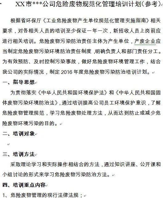 危險(xiǎn)廢物業(yè)務(wù)培訓(xùn)制度