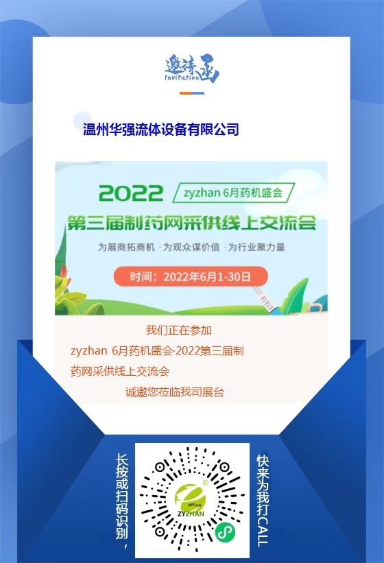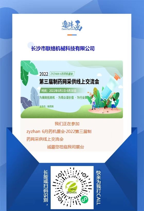 由制藥網(wǎng)主辦的zyzhan 6月藥機(jī)盛會(huì)——2022第三屆制藥網(wǎng)采供線(xiàn)上交流會(huì)(在線(xiàn)展會(huì))(簡(jiǎn)稱(chēng)“zyzhan 6月藥機(jī)盛會(huì)”)即將于2022年6月1日-6月30日舉行。本次盛會(huì)設(shè)原料藥機(jī)械館、制劑機(jī)械館、儀器儀表館、藥品包裝機(jī)館、制藥用水/氣設(shè)備館、通用機(jī)械設(shè)備館、其他制藥設(shè)備館,目前超百家企業(yè)都已入駐相應(yīng)展館,正在等待與您相見(jiàn)!