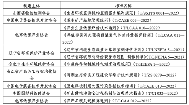 5月,全國團體標準信息平臺公布了11項生態(tài)保護和環(huán)境治理類團體標準,詳見表2。