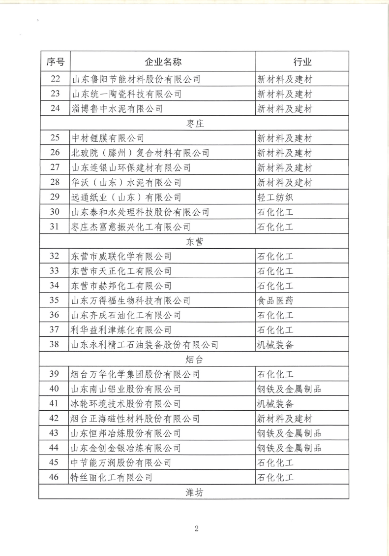 山東省工業(yè)和信息化廳關(guān)于2022年省級綠色工廠名單的公示