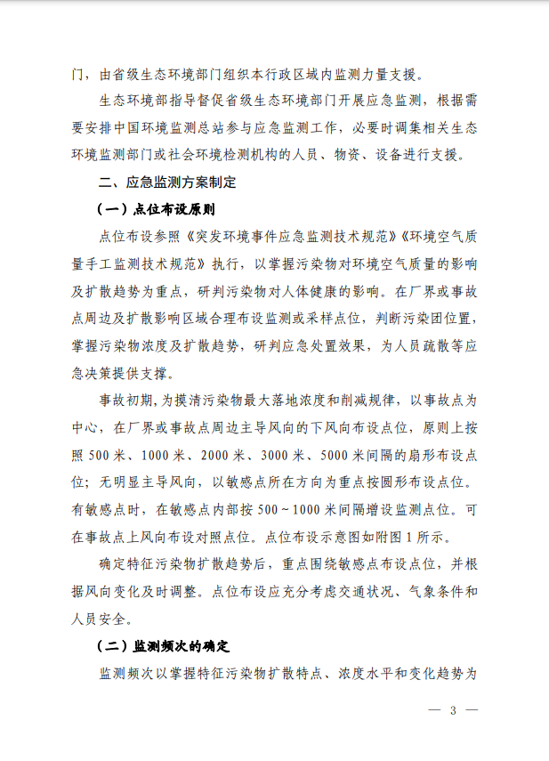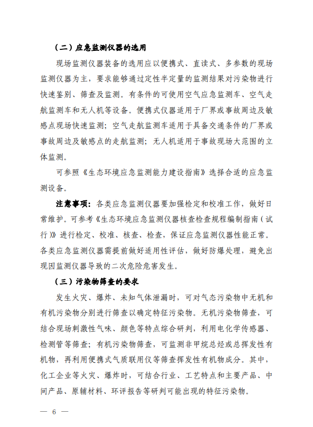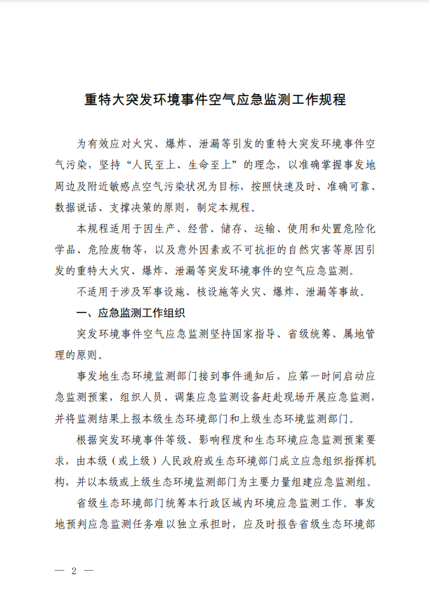 2022年6月15日,生態(tài)環(huán)境部印發(fā)《重特大突發(fā)環(huán)境事件空氣應(yīng)急監(jiān)測工作規(guī)程》,本規(guī)程適用于因生產(chǎn)、經(jīng)營、儲存、運輸、使用和處置危險化學(xué)品、危險廢物等,以及意外因素或不可抗拒的自然災(zāi)害等原因引發(fā)的重特大火災(zāi)、爆炸、泄漏等突發(fā)環(huán)境事件的空氣應(yīng)急監(jiān)測。
