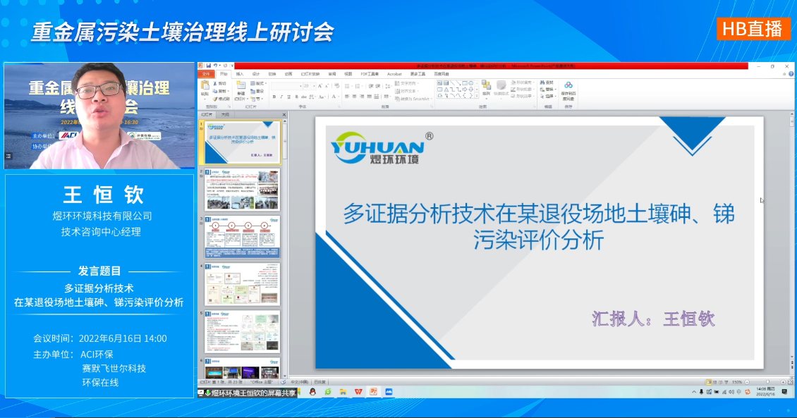 煜環(huán)環(huán)境科技有限公司是一家專注于土壤、地下水污染防治工程和環(huán)保技術(shù)服務(wù)咨詢的專業(yè)公司。研討會(huì)上,煜環(huán)環(huán)境科技有限公司技術(shù)咨詢中心經(jīng)理王恒欽作了題為“多證據(jù)分析技術(shù)在某退役場地土壤砷、銻污染評價(jià)分析”的匯報(bào)。王經(jīng)理介紹了此退役場地項(xiàng)目背景并進(jìn)行了產(chǎn)排污分析。他認(rèn)為,確定是否為背景原因污染意義重大,場地存在普遍超標(biāo)現(xiàn)象且大部分未兜底,對后續(xù)詳調(diào)布點(diǎn)采樣深度、采樣密度意義重大;人為污染所致還是場地的天然高背景所致,關(guān)系修復(fù)方式、污染責(zé)任等問題;對于未來變更土地性質(zhì),維護(hù)社會(huì)穩(wěn)定有很大現(xiàn)實(shí)意義。