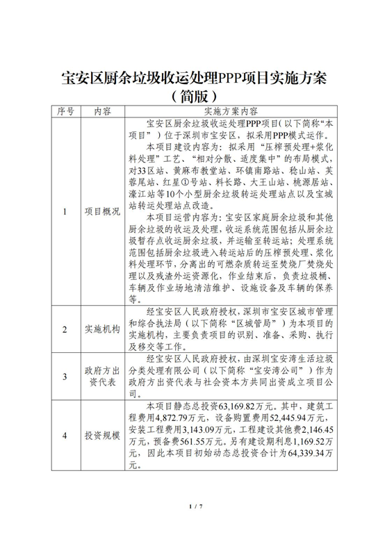 據(jù)悉,為構(gòu)建完善的廚余垃圾分類投放、收集、運(yùn)輸、處理體系,推動寶安區(qū)廚余垃圾收運(yùn)處理PPP項目盡快落地,去年8月《寶安區(qū)廚余垃圾收運(yùn)處理PPP項目實(shí)施方案》(征求意見稿)掛網(wǎng)公示,面向社會公開征求意見。