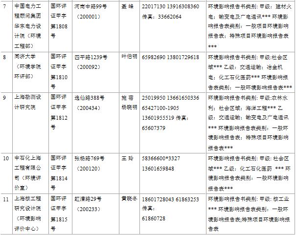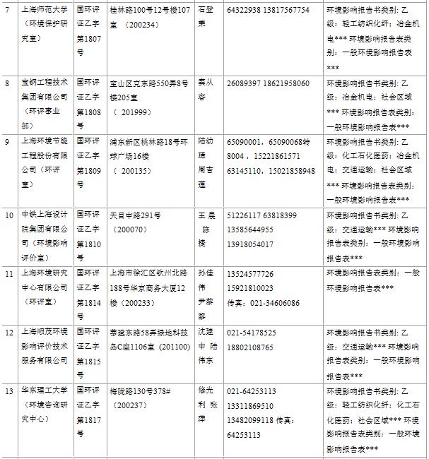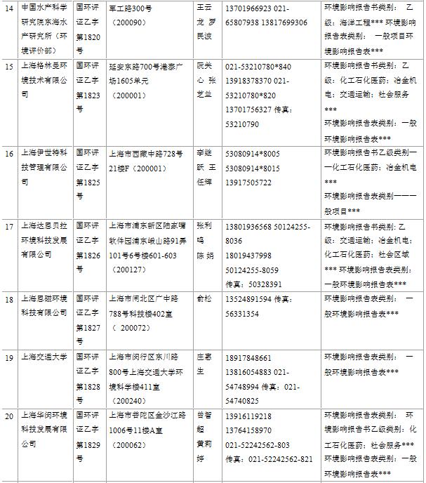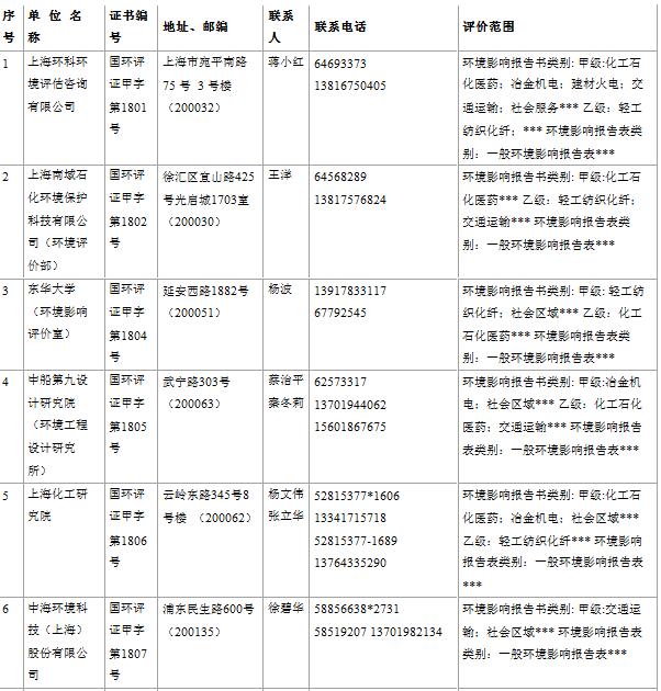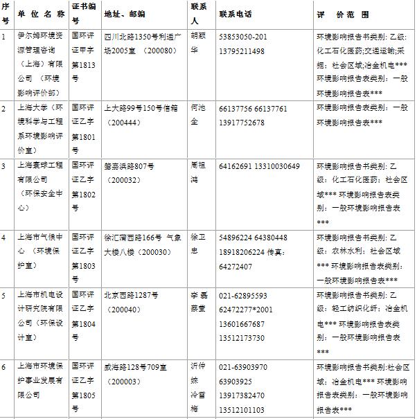 上海市建設(shè)項(xiàng)目環(huán)境影響評價(jià)單位一覽表(2017年2月更新)