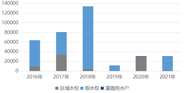 注:由于2016、2017年交易數(shù)據(jù)無(wú)法獲得,僅包含2018年-2021年,2019年無(wú)區(qū)域水權(quán)交易
