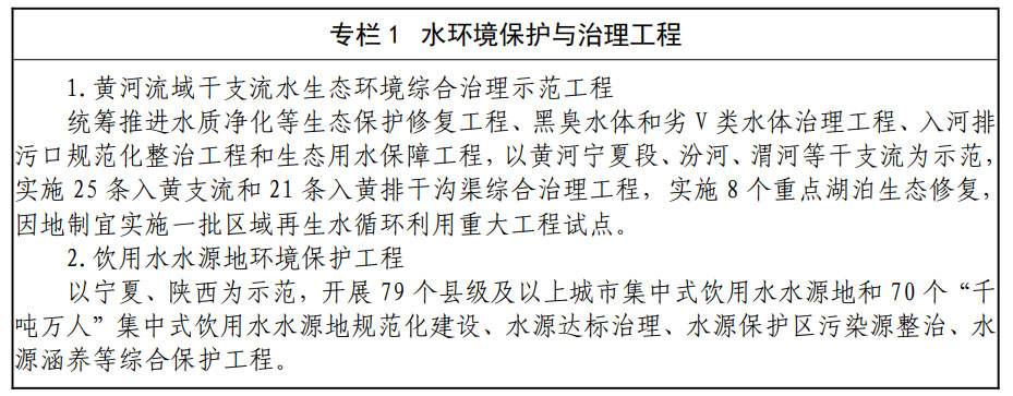 為保障目標(biāo)任務(wù)完成,《規(guī)劃》部署了8大重點(diǎn)工程。這8大重點(diǎn)工程,涵蓋了水、氣、土、生態(tài)、固廢等污染治理和生態(tài)保護(hù)修復(fù)方面,具體包括:水環(huán)境保護(hù)與治理工程、重點(diǎn)行業(yè)大氣污染治理工程、清潔取暖改造工程、移動(dòng)源污染治理工程、土壤與地下水污染治理工程、生態(tài)保護(hù)修復(fù)工程、危險(xiǎn)廢物收集處置能力提升工程、醫(yī)療廢物收集處置能力提升工程等。《規(guī)劃》提出,要推進(jìn)多元投資,把《規(guī)劃》確定的目標(biāo)、任務(wù)、措施和重大工程納入各地區(qū)相關(guān)規(guī)劃和投資計(jì)劃,做好生態(tài)環(huán)境保護(hù)治理項(xiàng)目儲(chǔ)備,加大《規(guī)劃》工程項(xiàng)目資金傾斜和要素保障力度。同時(shí),還要?jiǎng)?chuàng)新投融資機(jī)制,拓寬投融資渠道,發(fā)揮政府投資引導(dǎo)作用,引導(dǎo)金融機(jī)構(gòu)加大對(duì)《規(guī)劃》工程項(xiàng)目建設(shè)的金融支持,鼓勵(lì)和引導(dǎo)民間資本參與黃河流域生態(tài)保護(hù)與污染治理。