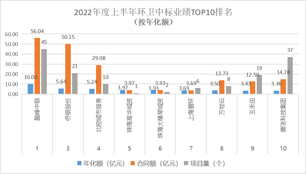 附1:2022年度上半年環(huán)衛(wèi)項目中標業(yè)績TOP10排名(按年化額)