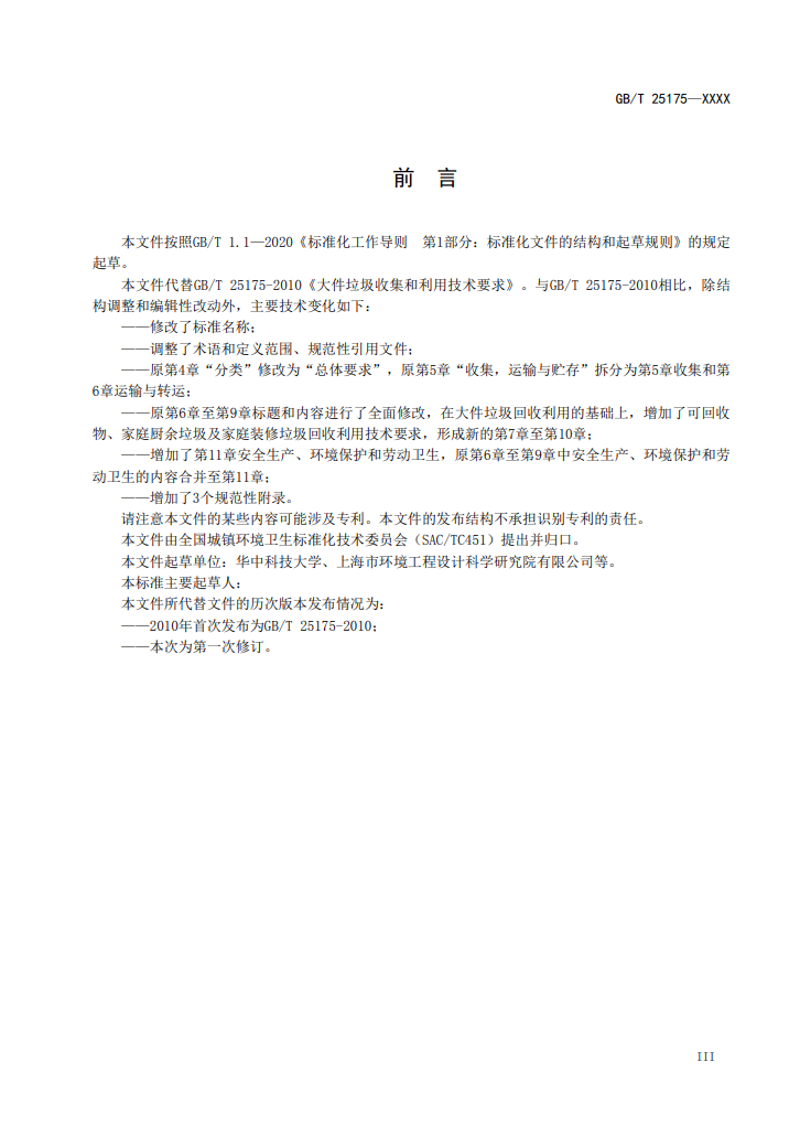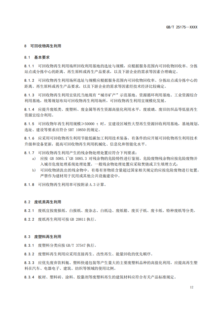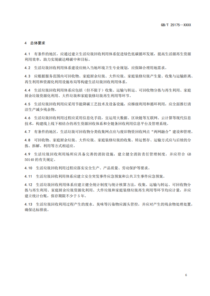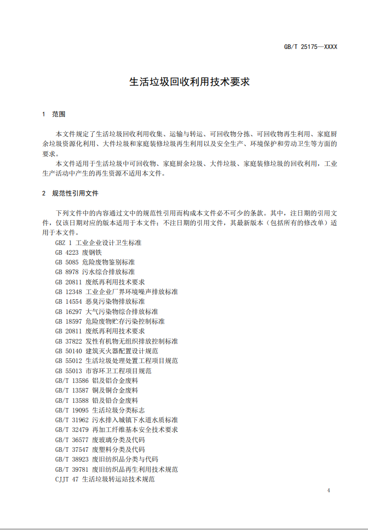 《生活垃圾回收利用技術(shù)要求》(征求意見稿)
