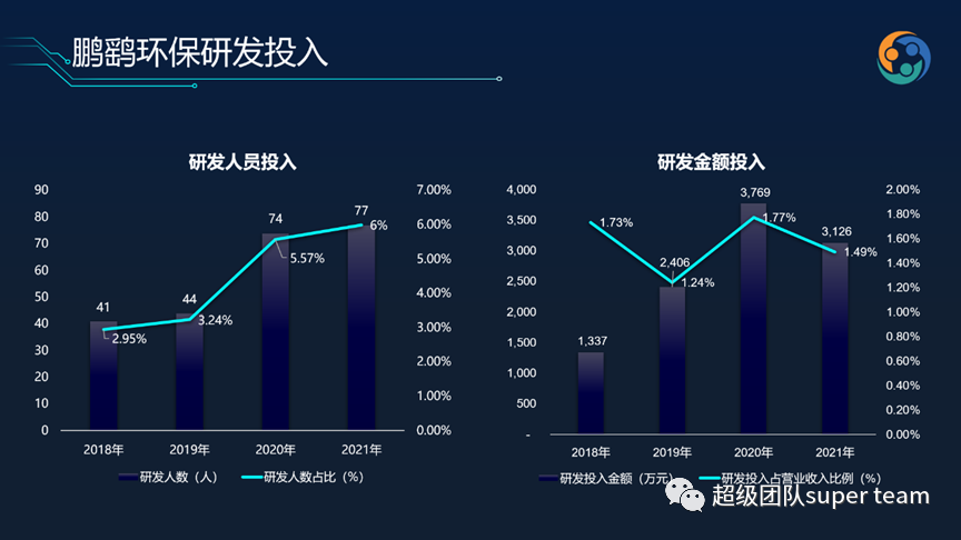 相比2019年,近兩年鵬鷂環(huán)保的研發(fā)費(fèi)用率有所攀升,2021年的研發(fā)投入為3100萬,研發(fā)費(fèi)用率約為1.5%。
