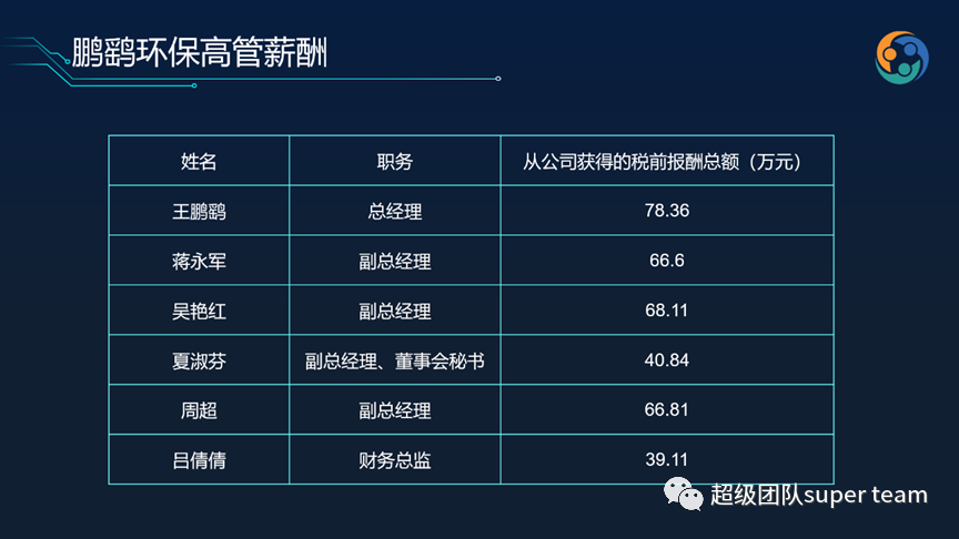 鵬鷂環(huán)保一直強(qiáng)調(diào)的是以人為本, 從鵬鷂環(huán)保的高管薪酬來看,如果鵬鷂把自己定義為一個(gè)區(qū)域型企業(yè),鵬鷂的高管薪酬絕對不算低,絕對給出了對高管人才的重視。而且這僅為上市公司公開數(shù)據(jù)。