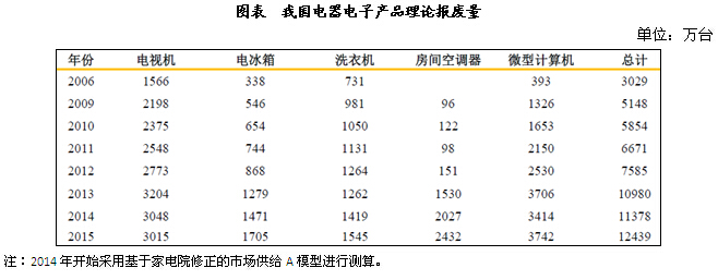我國電子廢棄物報廢量規(guī)模