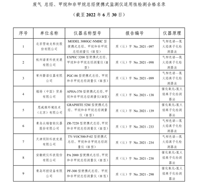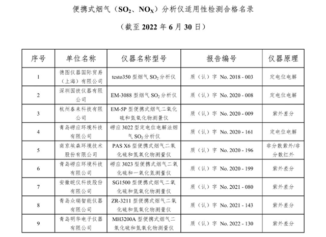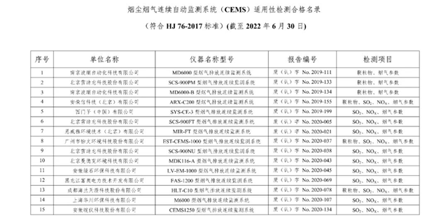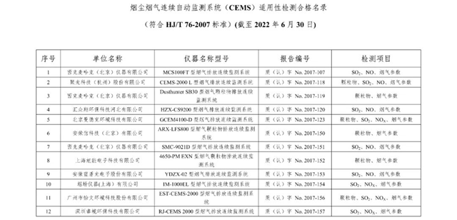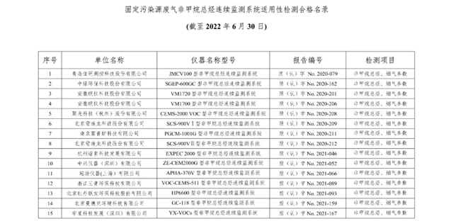 原標(biāo)題:總站報告 | 廢氣類適用性檢測合格名錄(截至2022年6月30日)