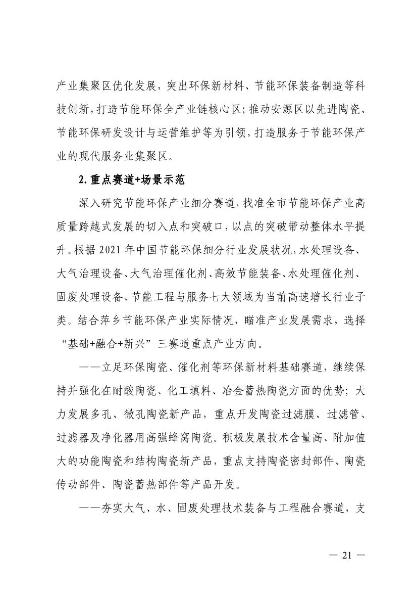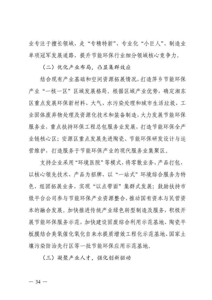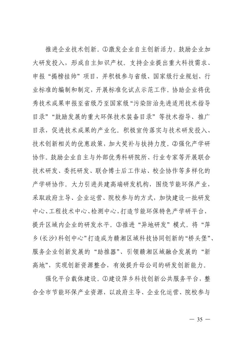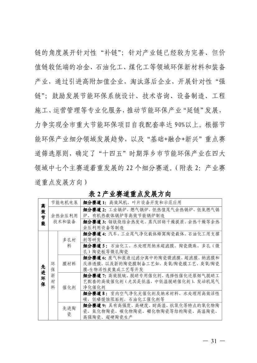 “十四五”期間,組建1-2個環(huán)保集團,以增強對國際先進技術裝備服務的承接能力,著力突破一批關鍵核心技術,強化集成應用示范,形成具有自主知識產(chǎn)權的整裝成套技術裝備,大幅提升節(jié)能環(huán)保技術和成套裝備本地化率,打造區(qū)域特色鮮明的湘東節(jié)能環(huán)保產(chǎn)業(yè)園。