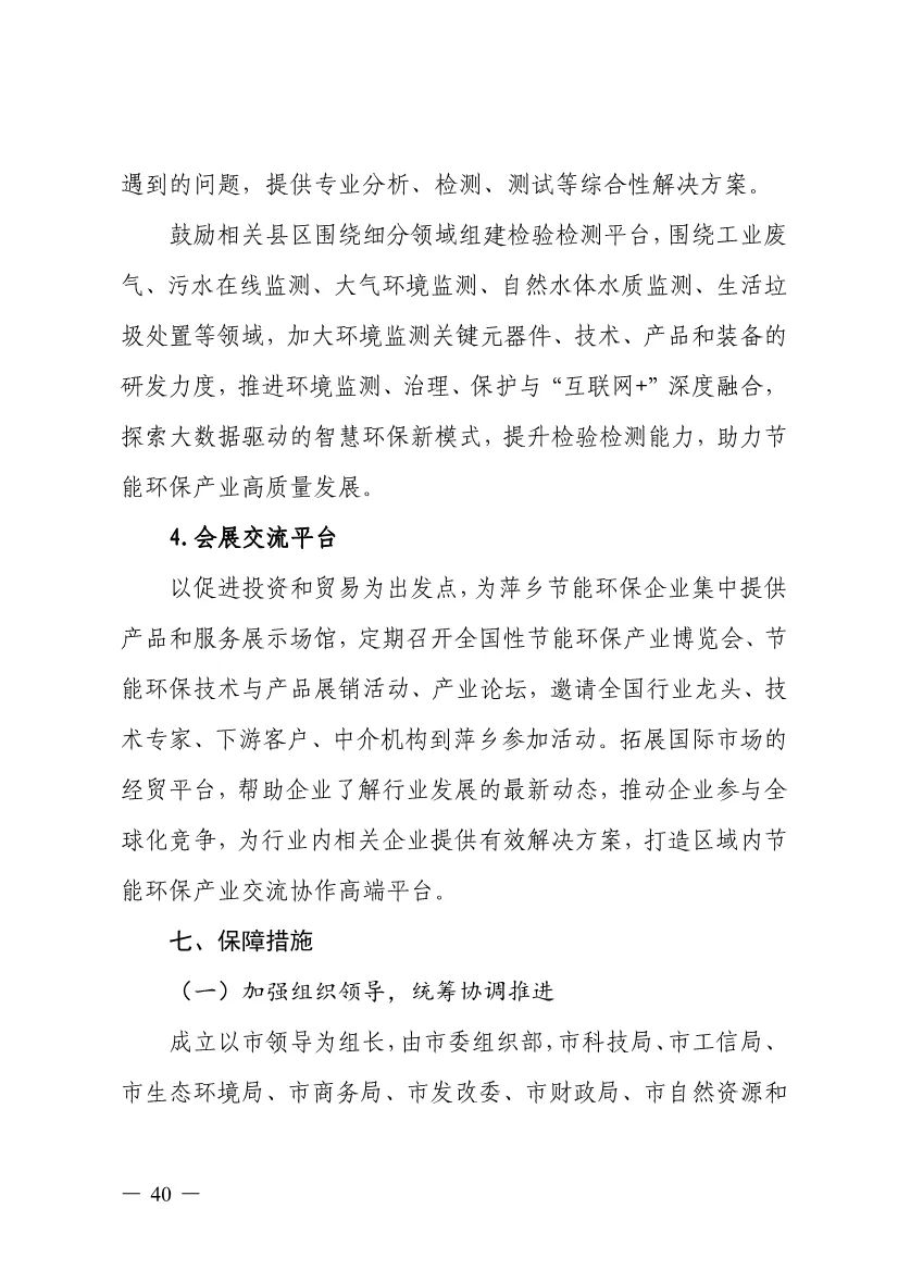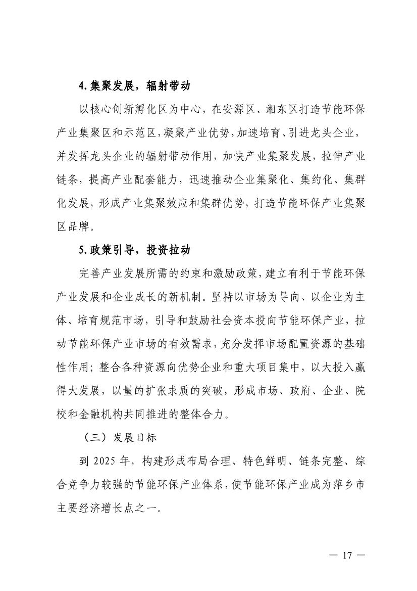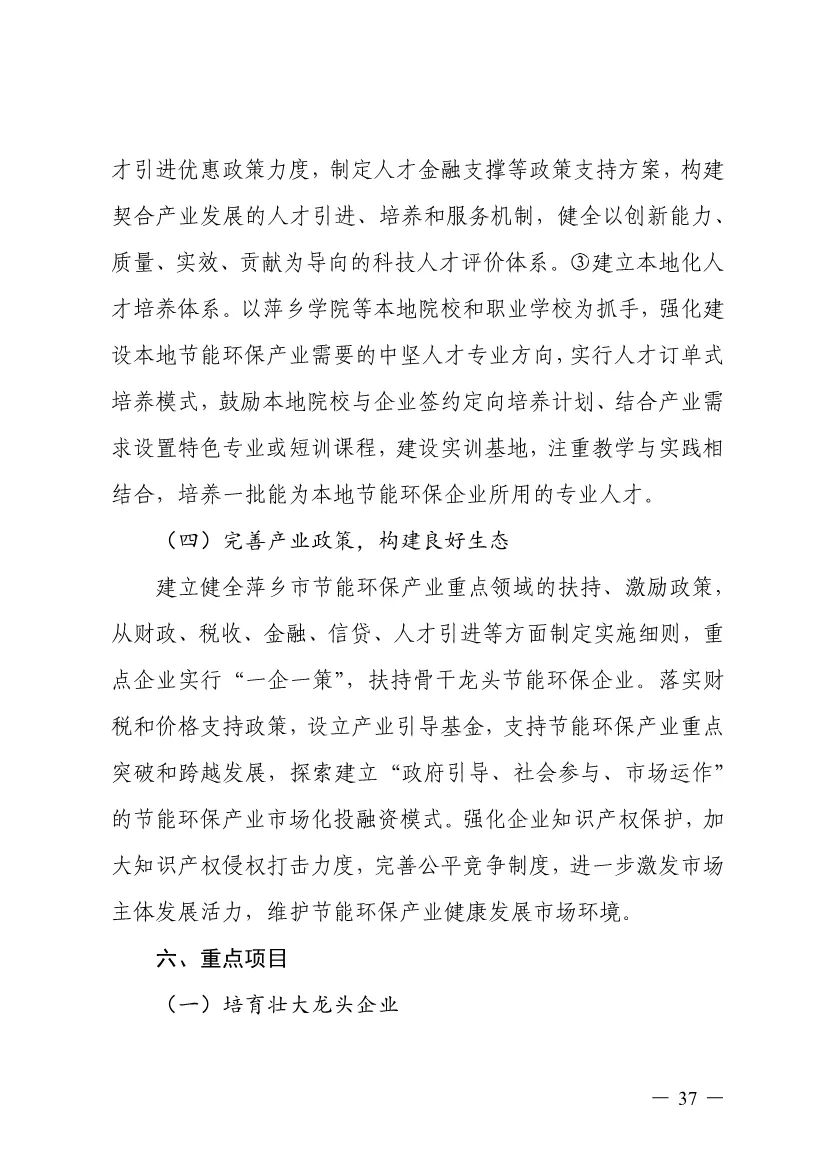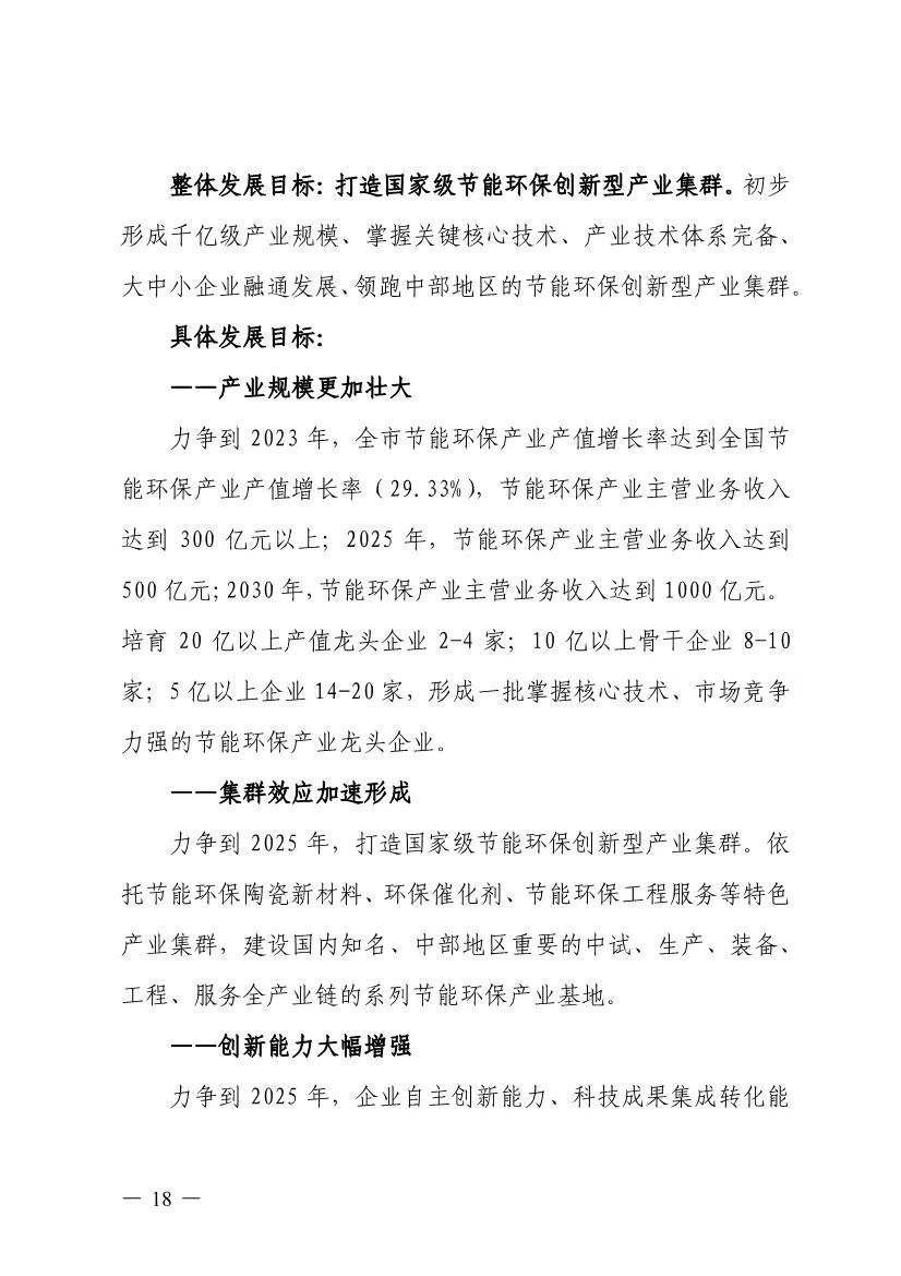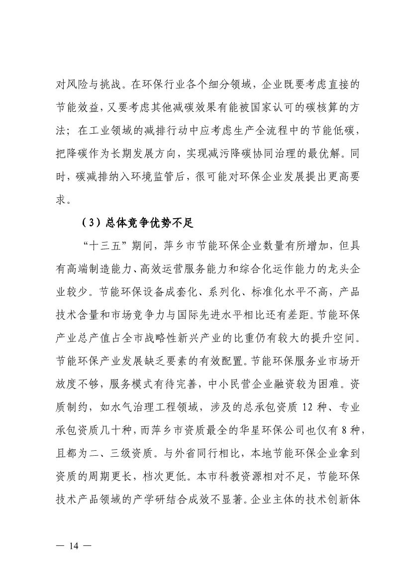 “十四五”期間,組建1-2個環(huán)保集團,以增強對國際先進技術裝備服務的承接能力,著力突破一批關鍵核心技術,強化集成應用示范,形成具有自主知識產(chǎn)權的整裝成套技術裝備,大幅提升節(jié)能環(huán)保技術和成套裝備本地化率,打造區(qū)域特色鮮明的湘東節(jié)能環(huán)保產(chǎn)業(yè)園。